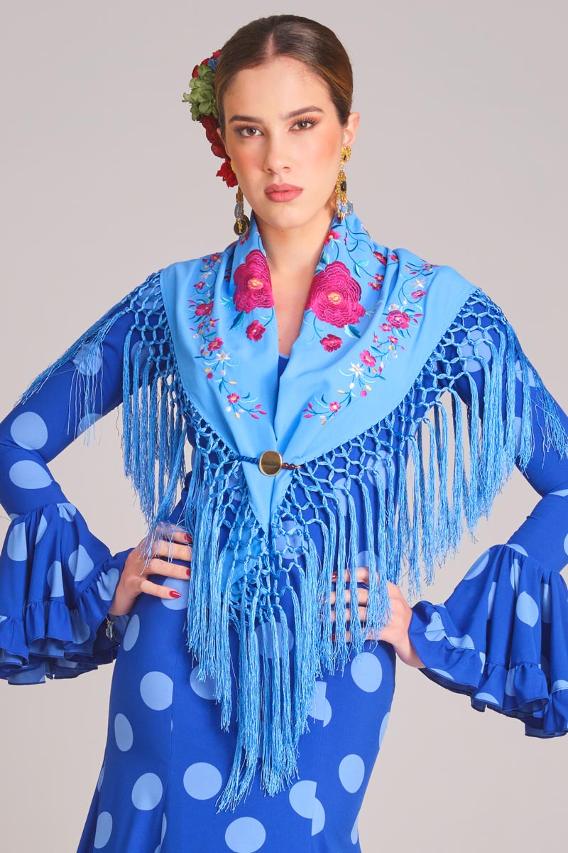 Mantoncillo bordado confeccionado en crepé con flecos al tono.