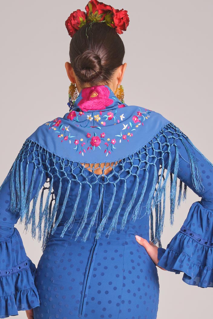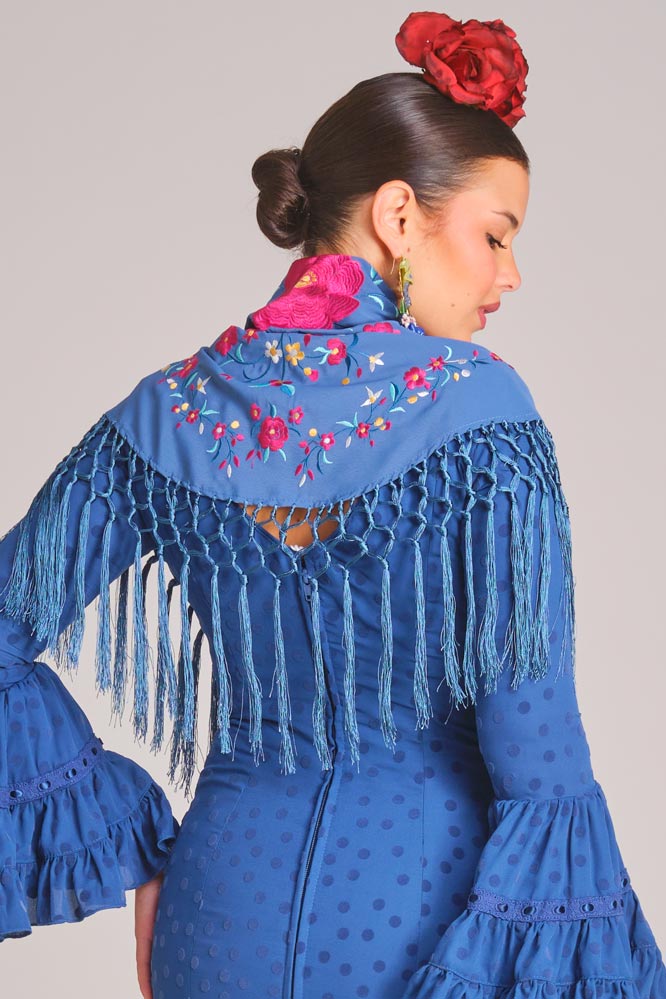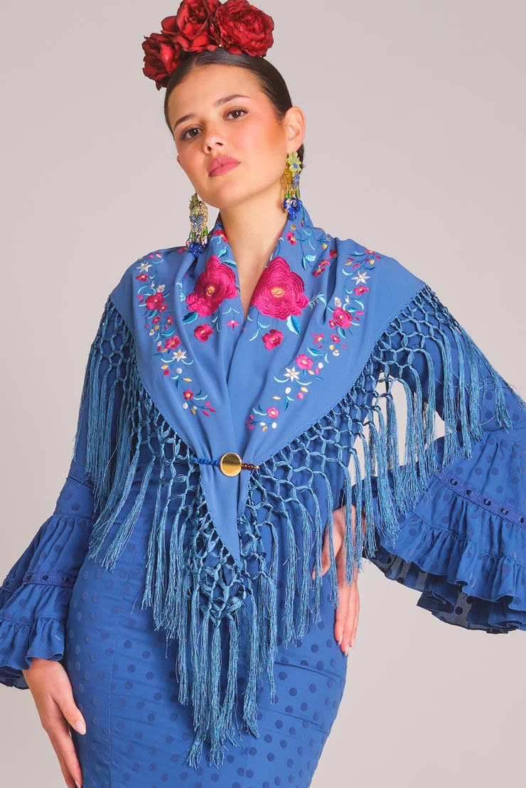 Mantoncillo bordado confeccionado en crepé con flecos al tono.