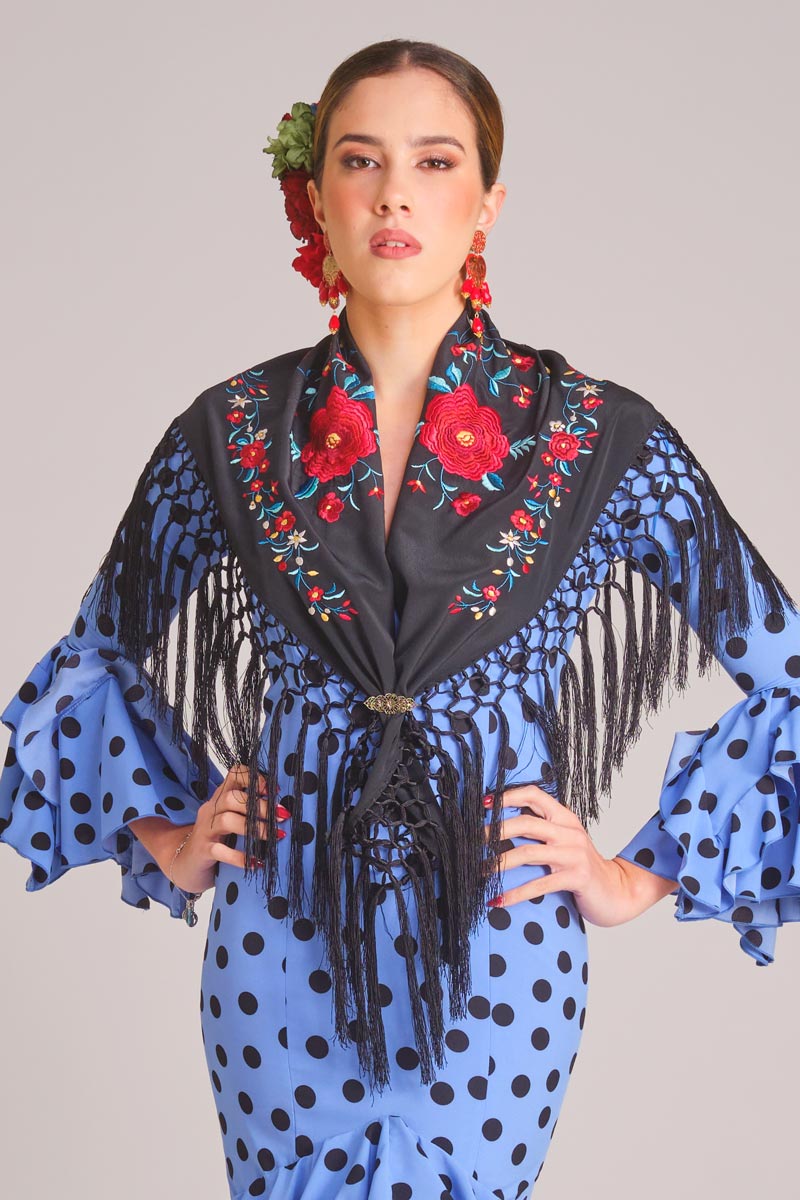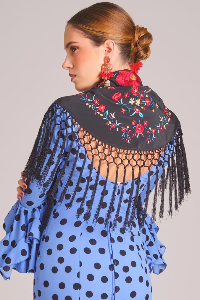 Mantoncillo bordado confeccionado en crepé con flecos al tono.