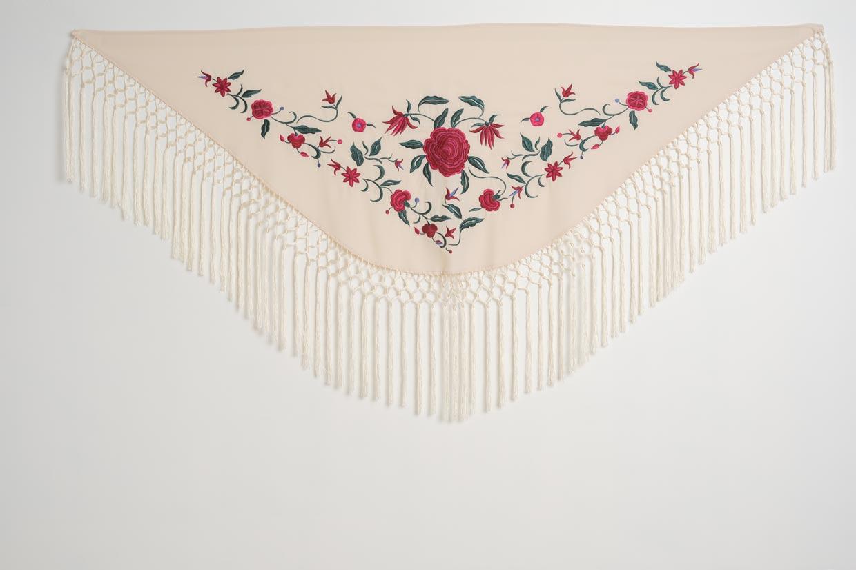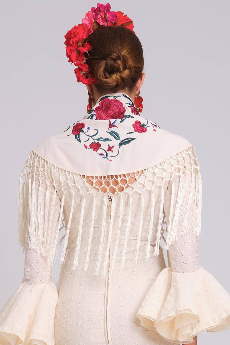 Mantoncillo bordado confeccionado en crepé con flecos al tono.