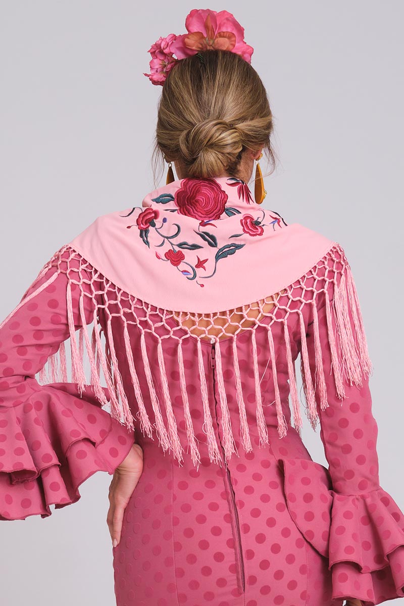 Mantoncillo bordado confeccionado en crepé con flecos al tono.