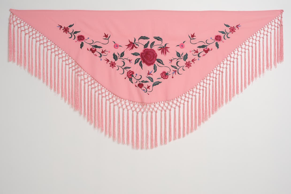 Mantoncillo bordado confeccionado en crepé con flecos al tono.