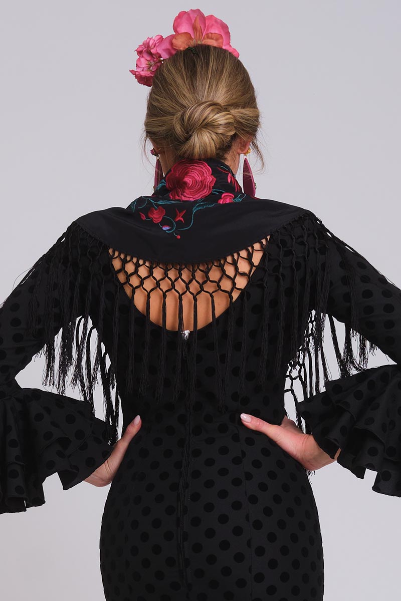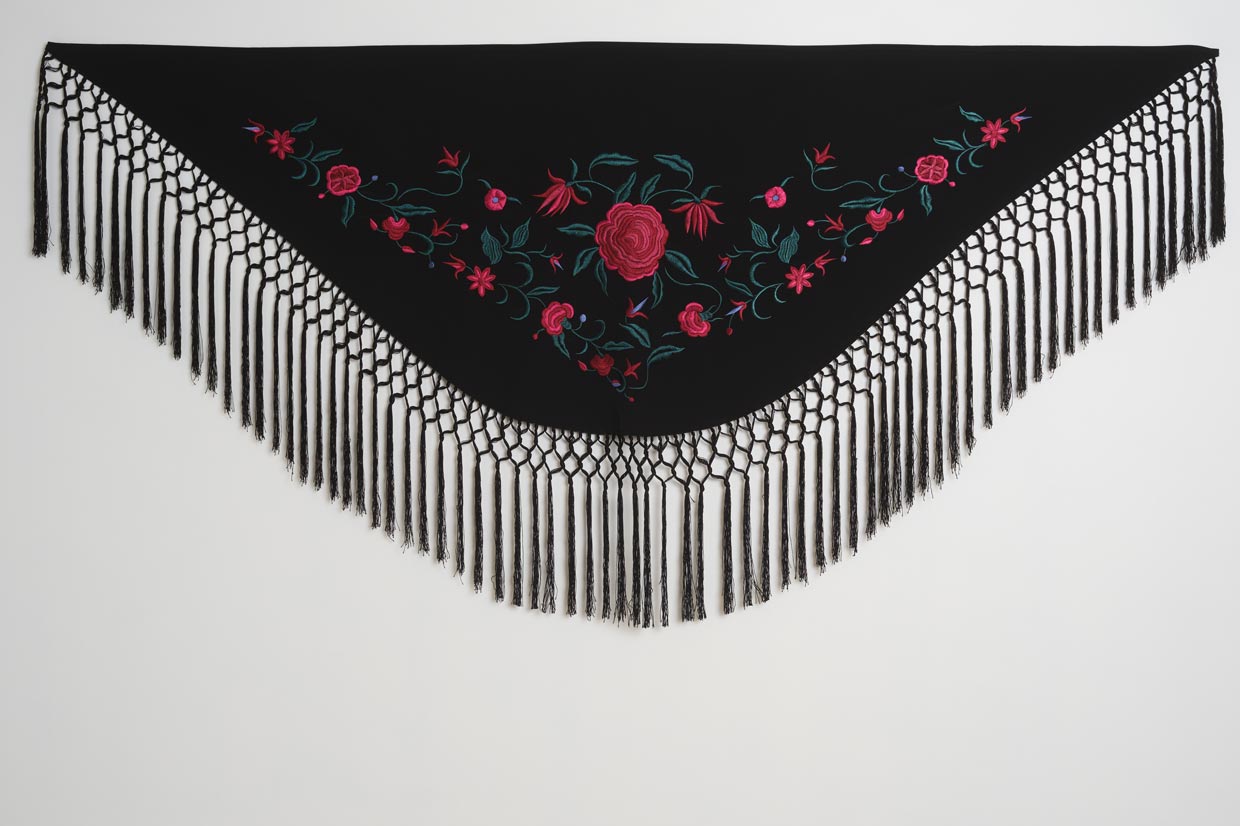 Mantoncillo bordado confeccionado en crepé con flecos al tono.