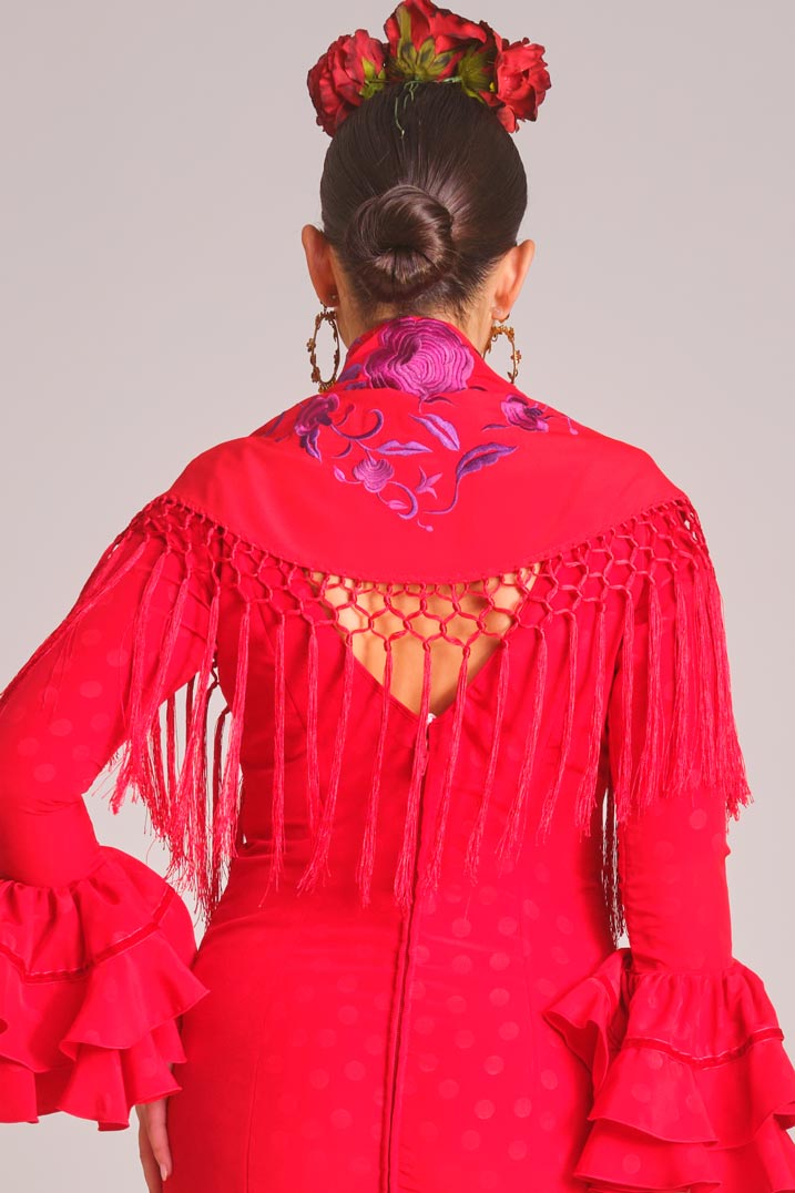 Mantoncillo bordado confeccionado en crepé con flecos al tono.
