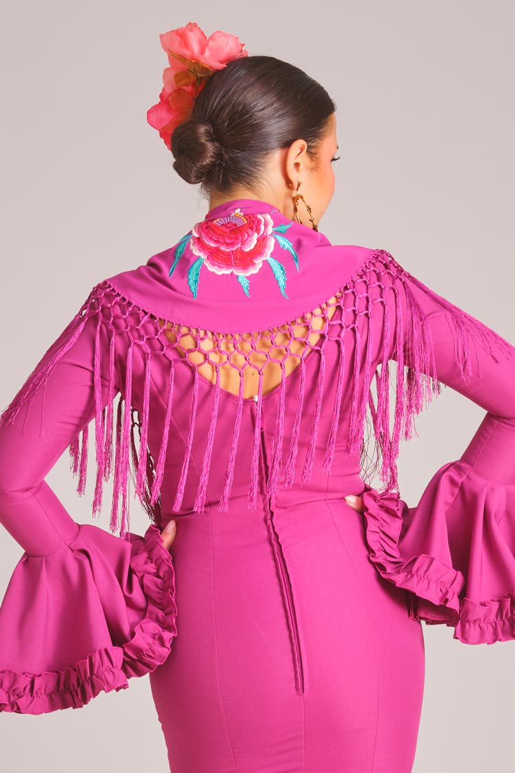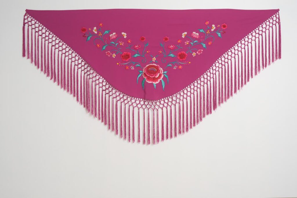 Mantoncillo bordado confeccionado en crepé con flecos al tono.