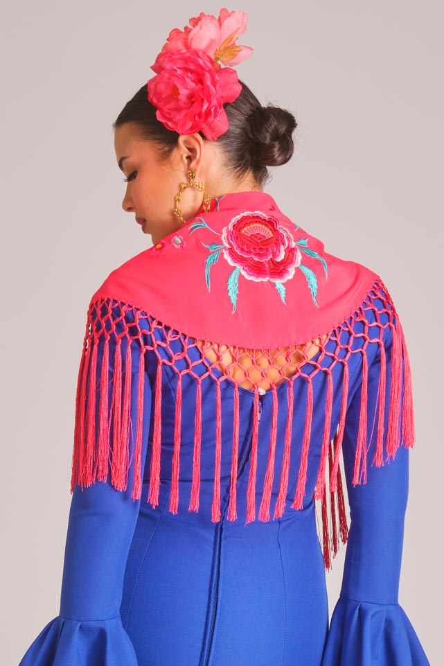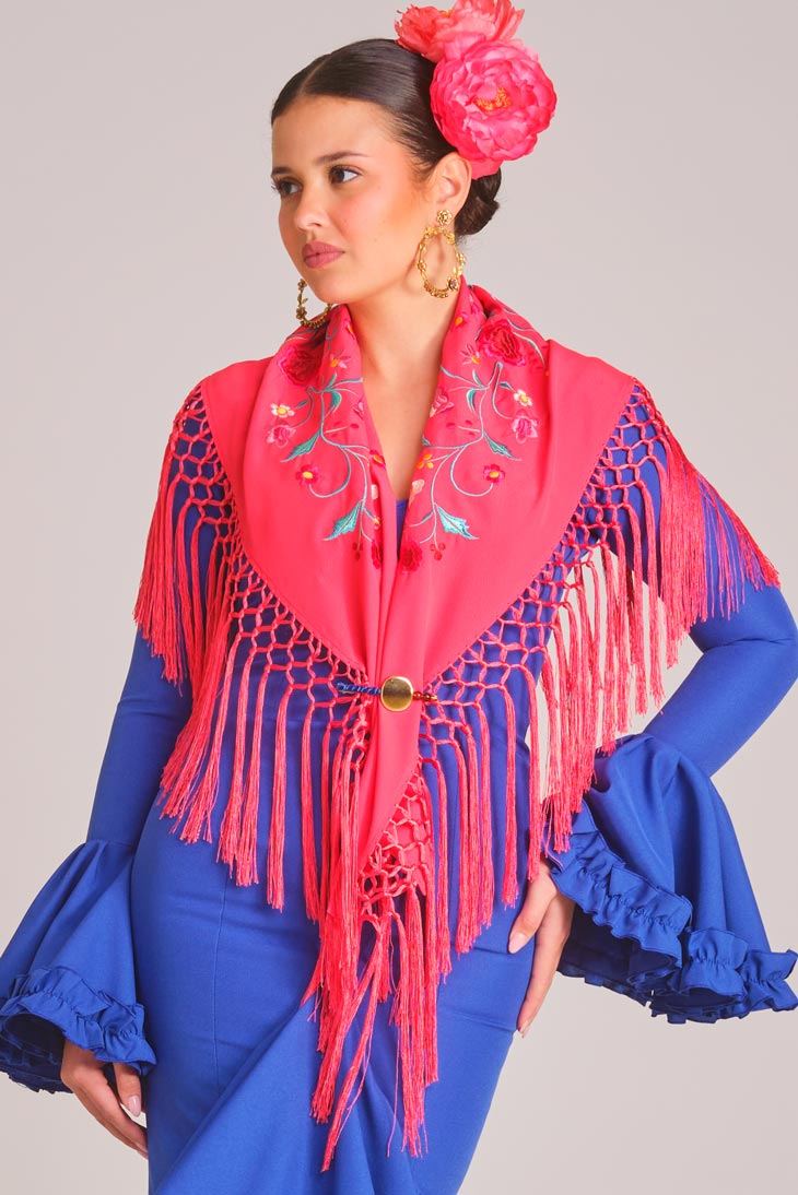 Mantoncillo bordado confeccionado en crepé con flecos al tono.