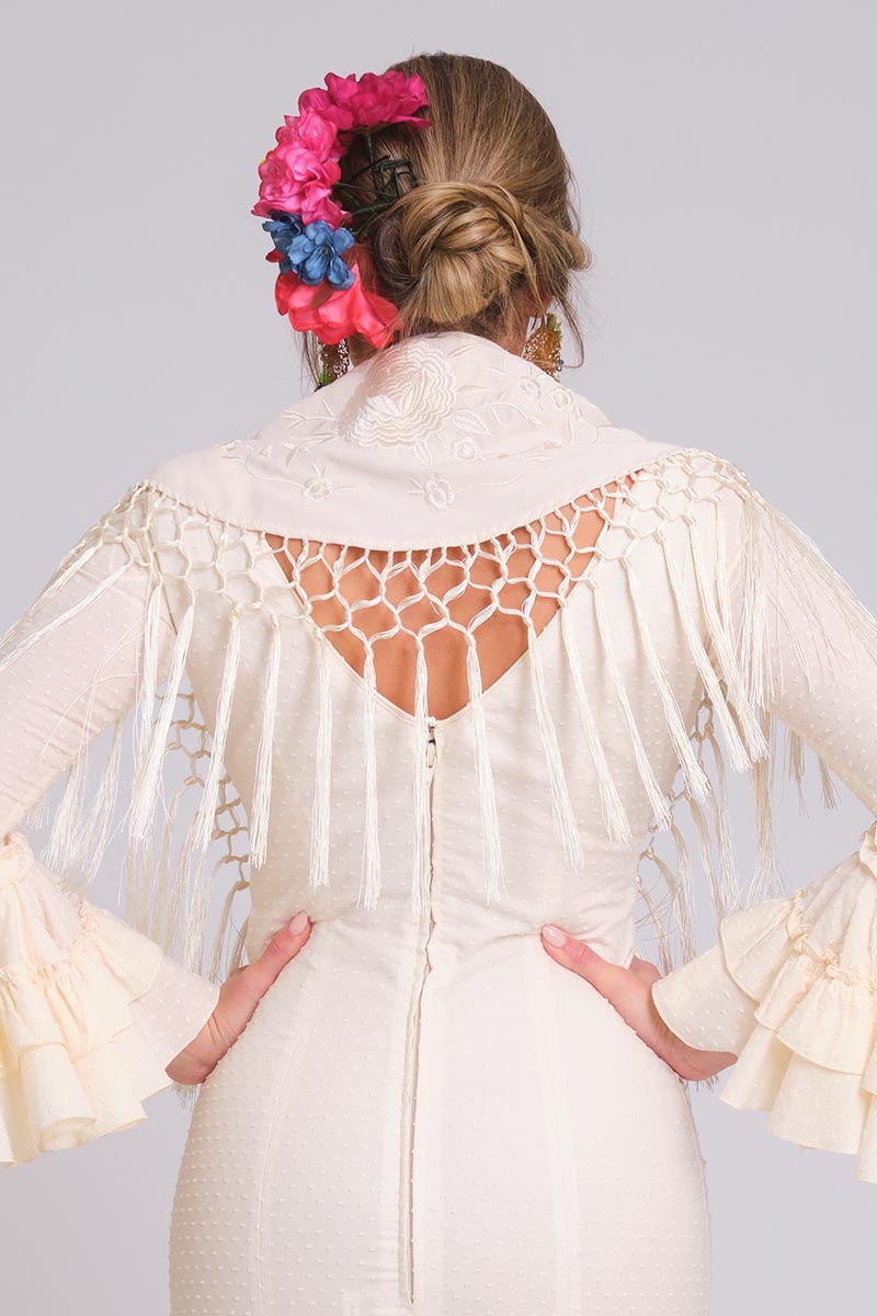 Mantoncillo bordado al tono y confeccionado en crepé.