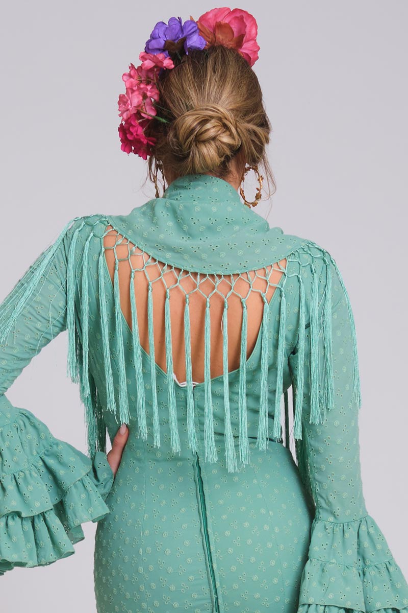 Flecado al tono con enrejado de 5 cm y fleco de 20 cm de largo.