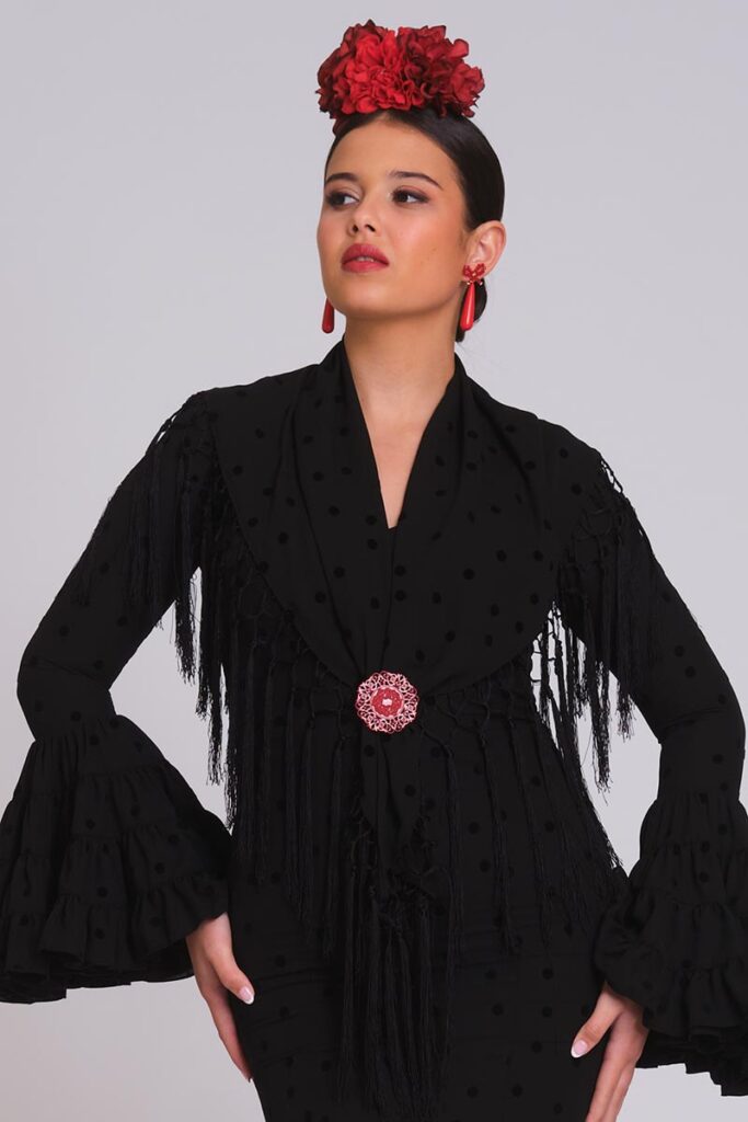 Flecado al tono con enrejado de 5 cm y fleco de 20 cm de largo.