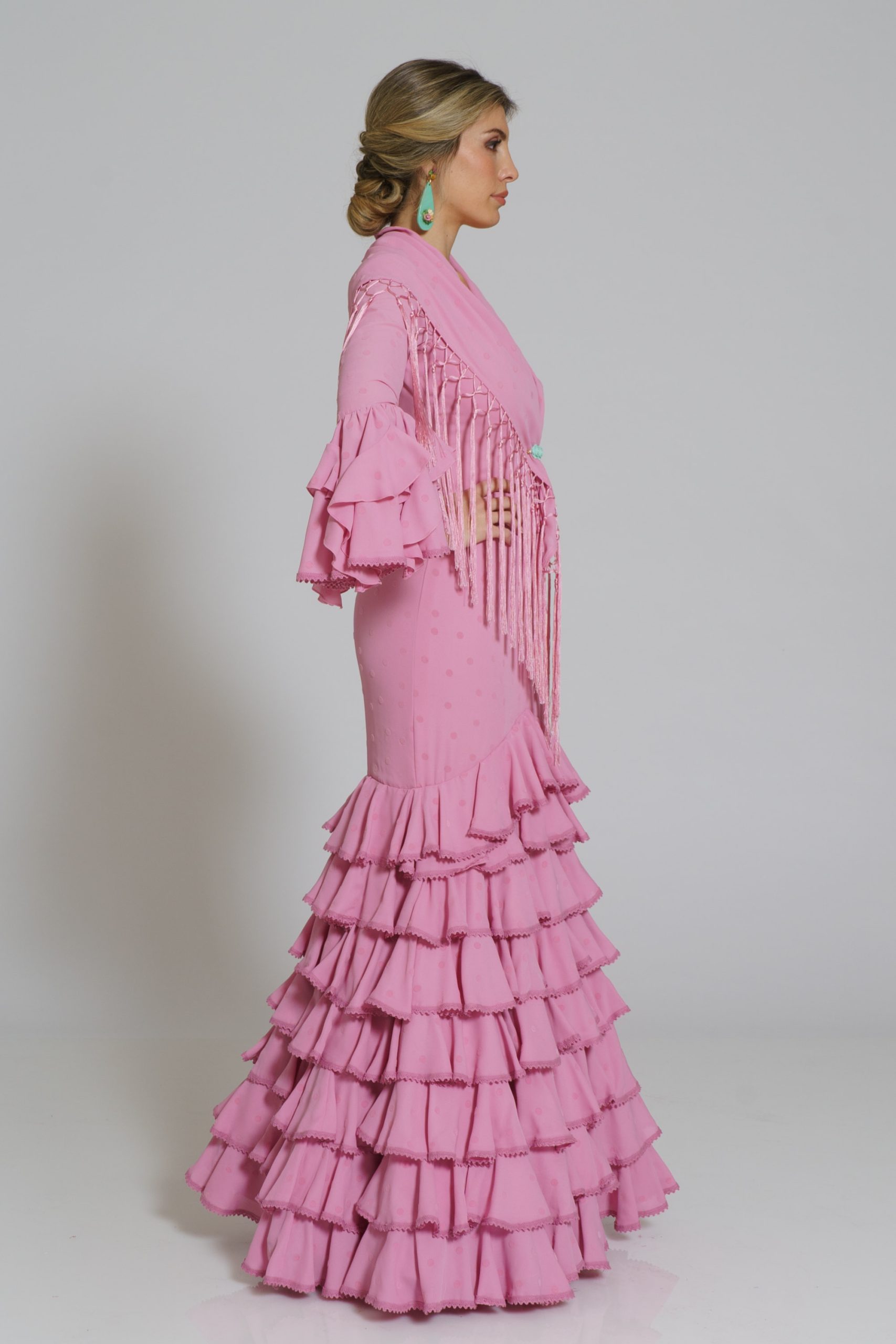 Puedes encontrasr el mantoncillo a juego del mismo tejido y color , en la categoría de MANTONCILLOS, bajo el nombre de mantoncillo Aire Rosa.