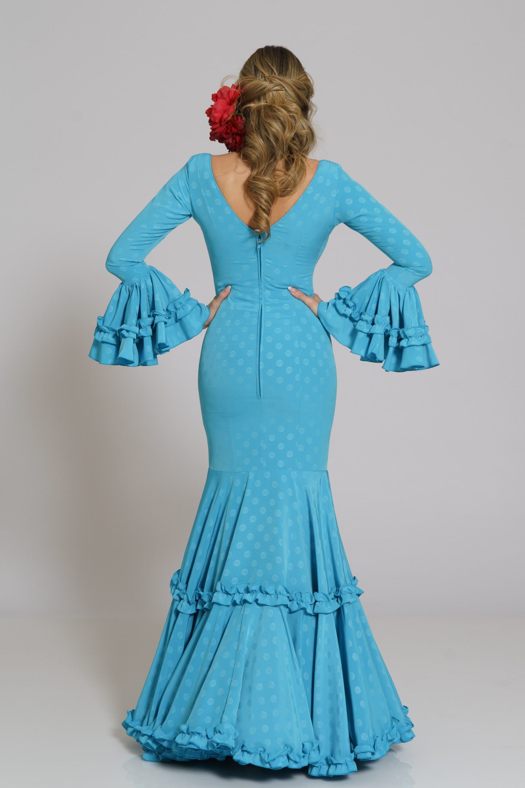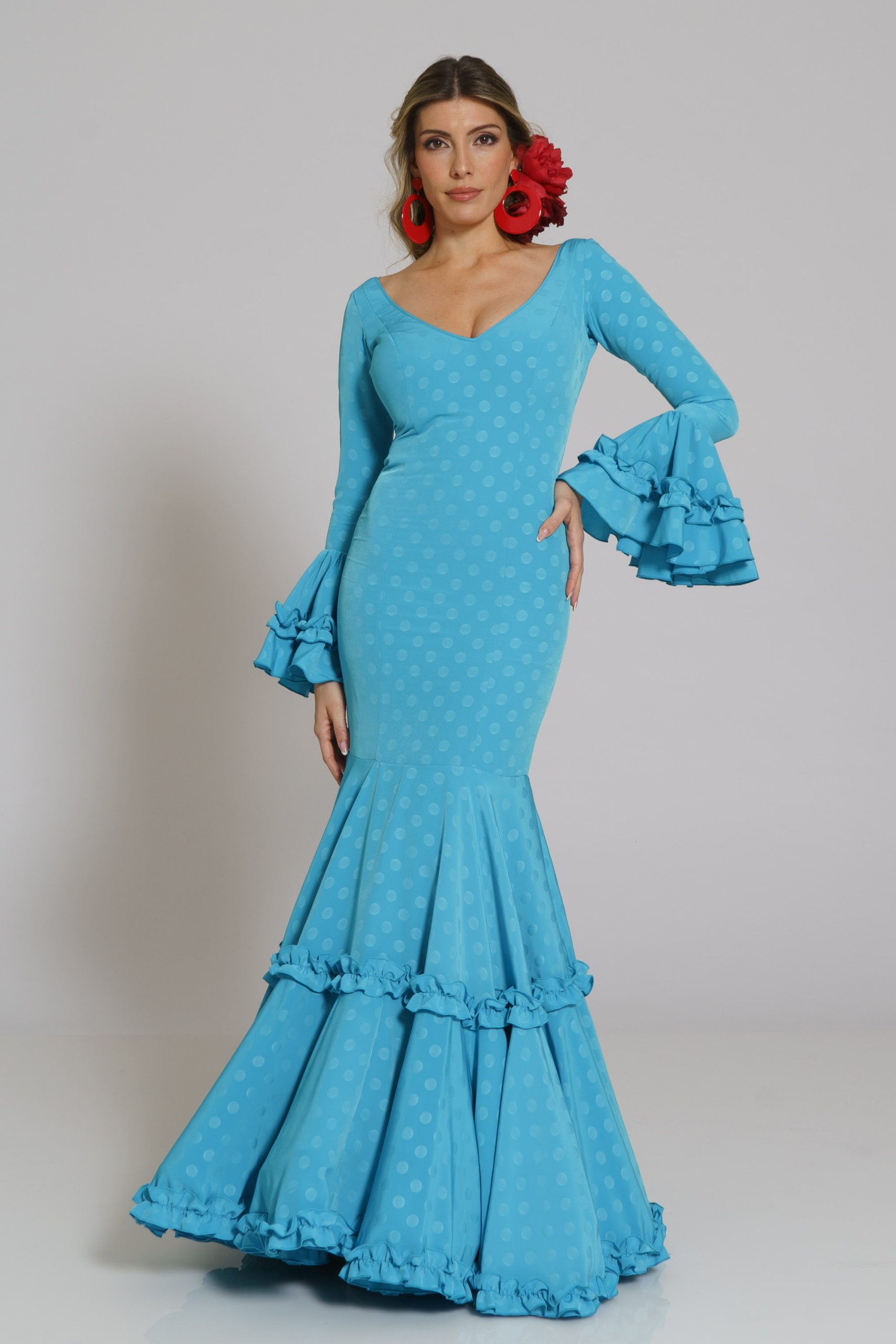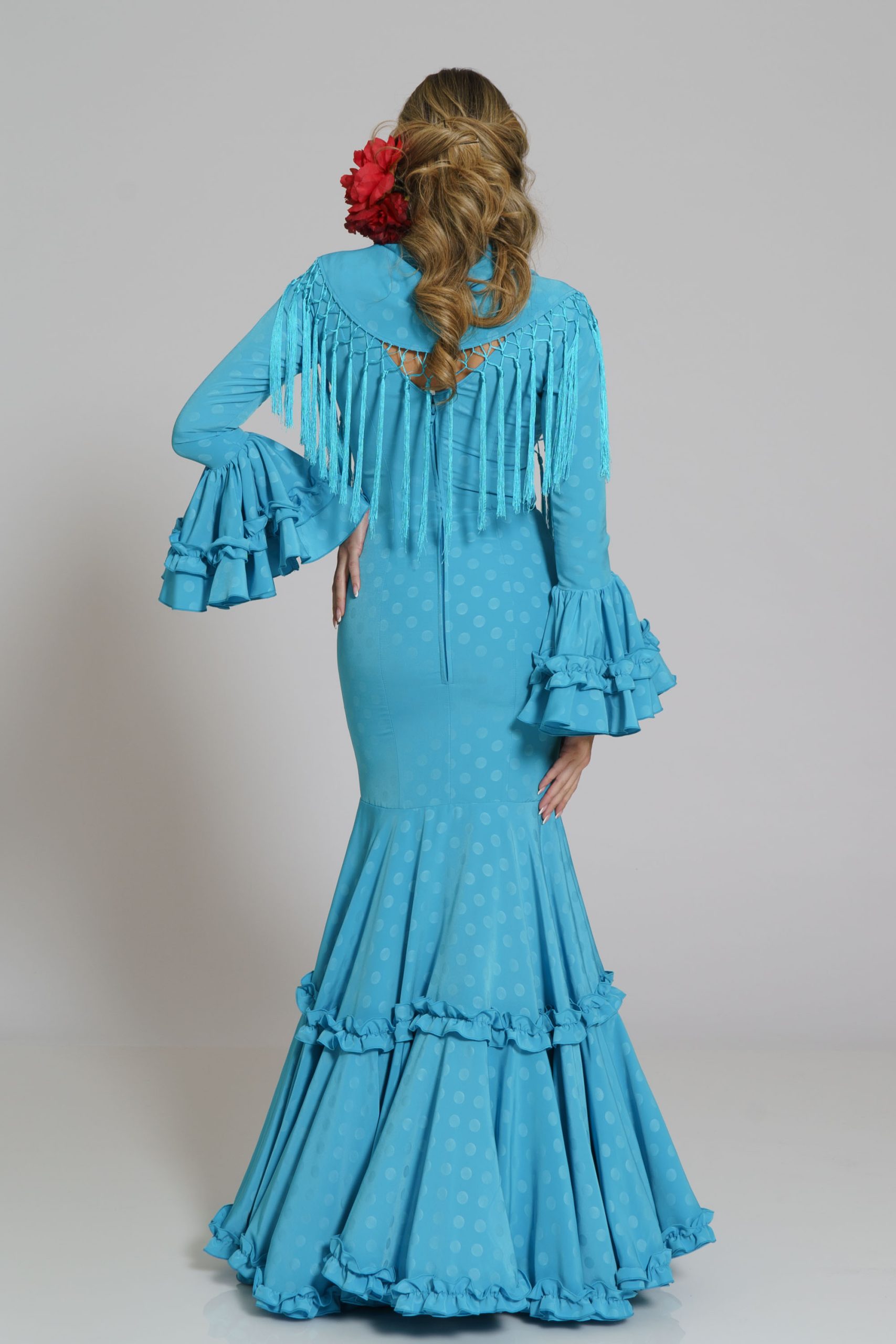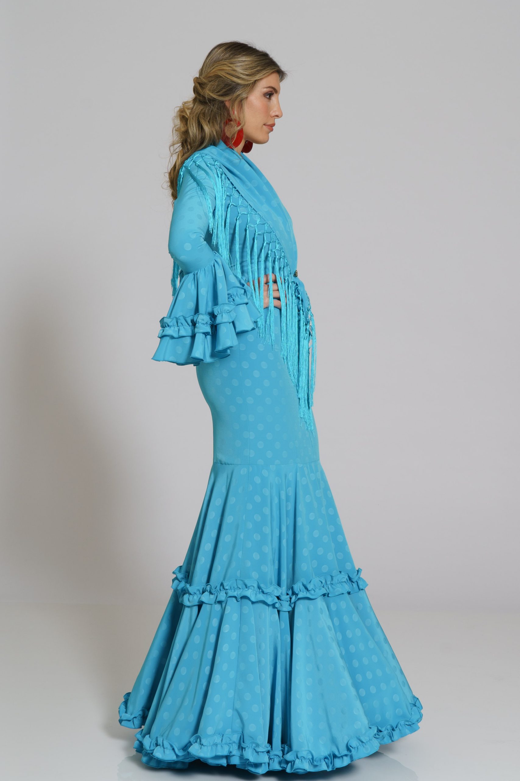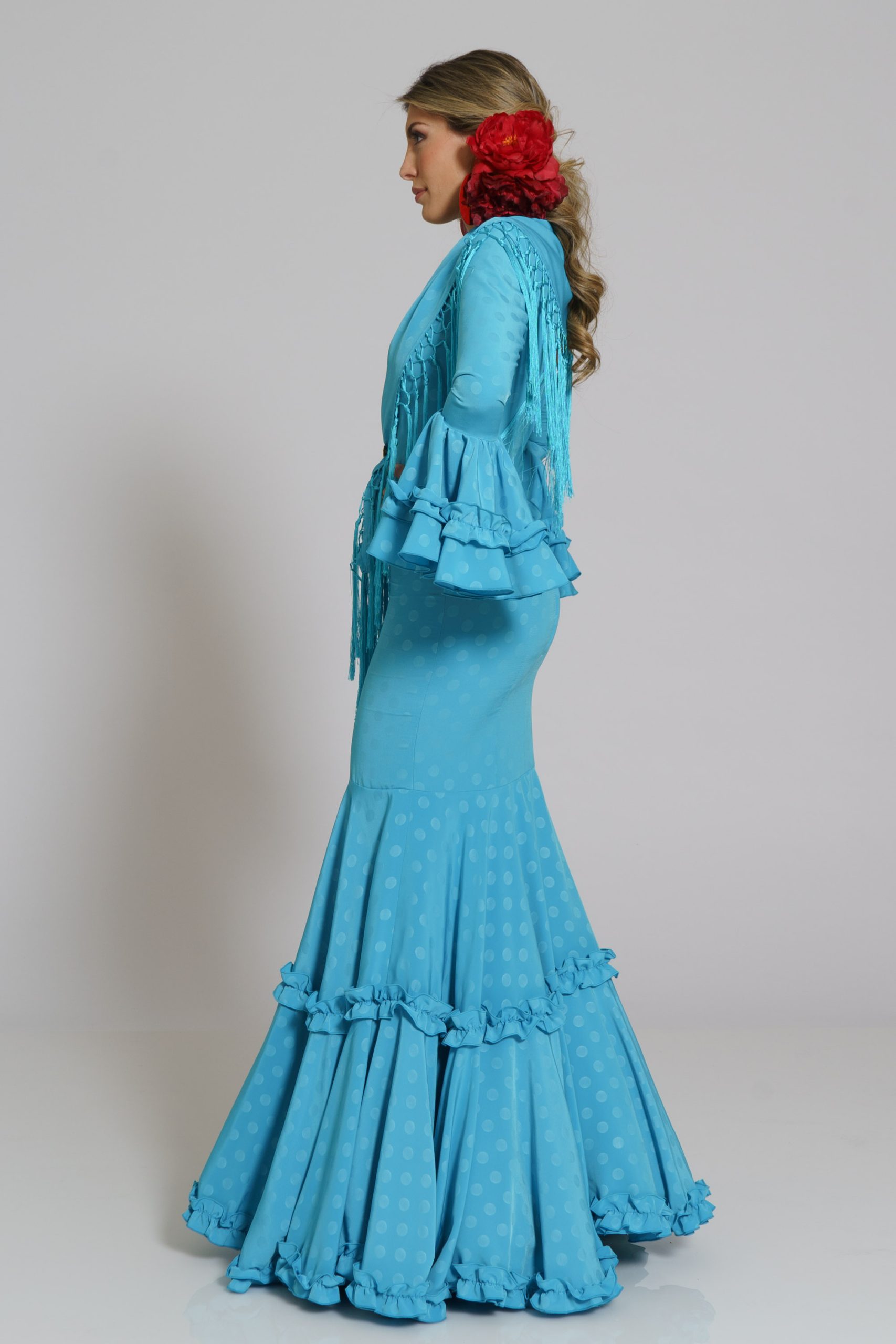 Este diseño tiene su mantoncillo confecionado en el mismo tejido y color con flecos al tono que puedes encontrar en la categoría de MANTONCILLOS con el nombre de Mantoncillo Caracola y referencia M25F9JACLI02.