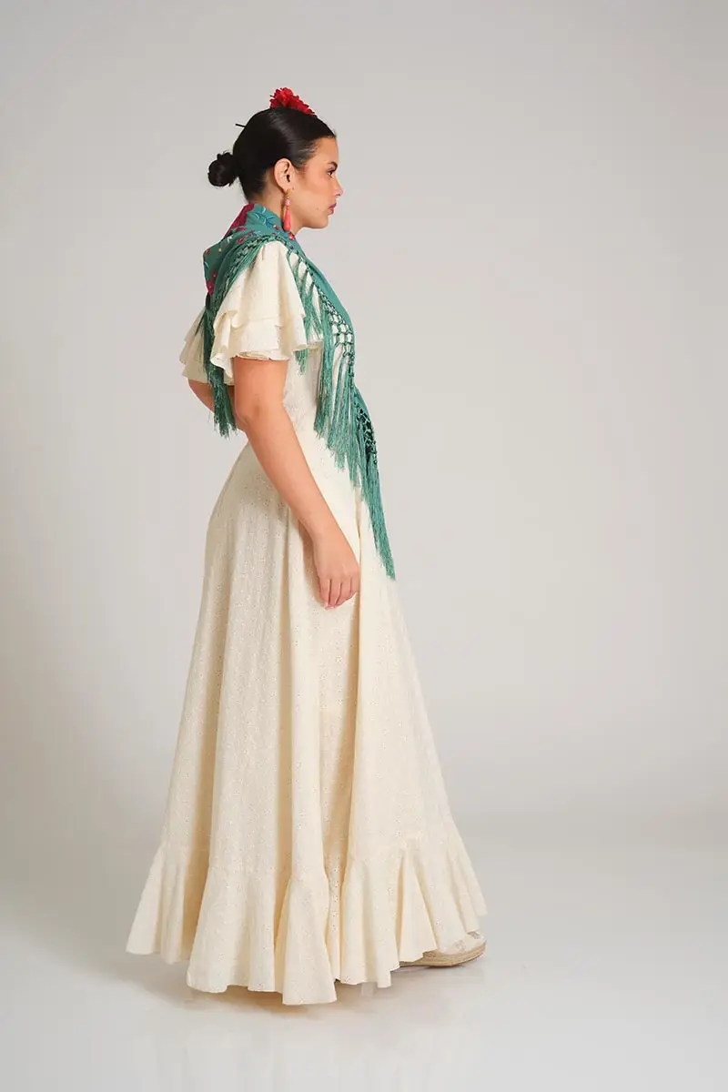 Encontrarás los complementos perfectos para tu look flamenco en el menú desplegable: mantoncillos, alpargatas y flores. Todos los complementos diseñados por nosotros con los colores de la colección.