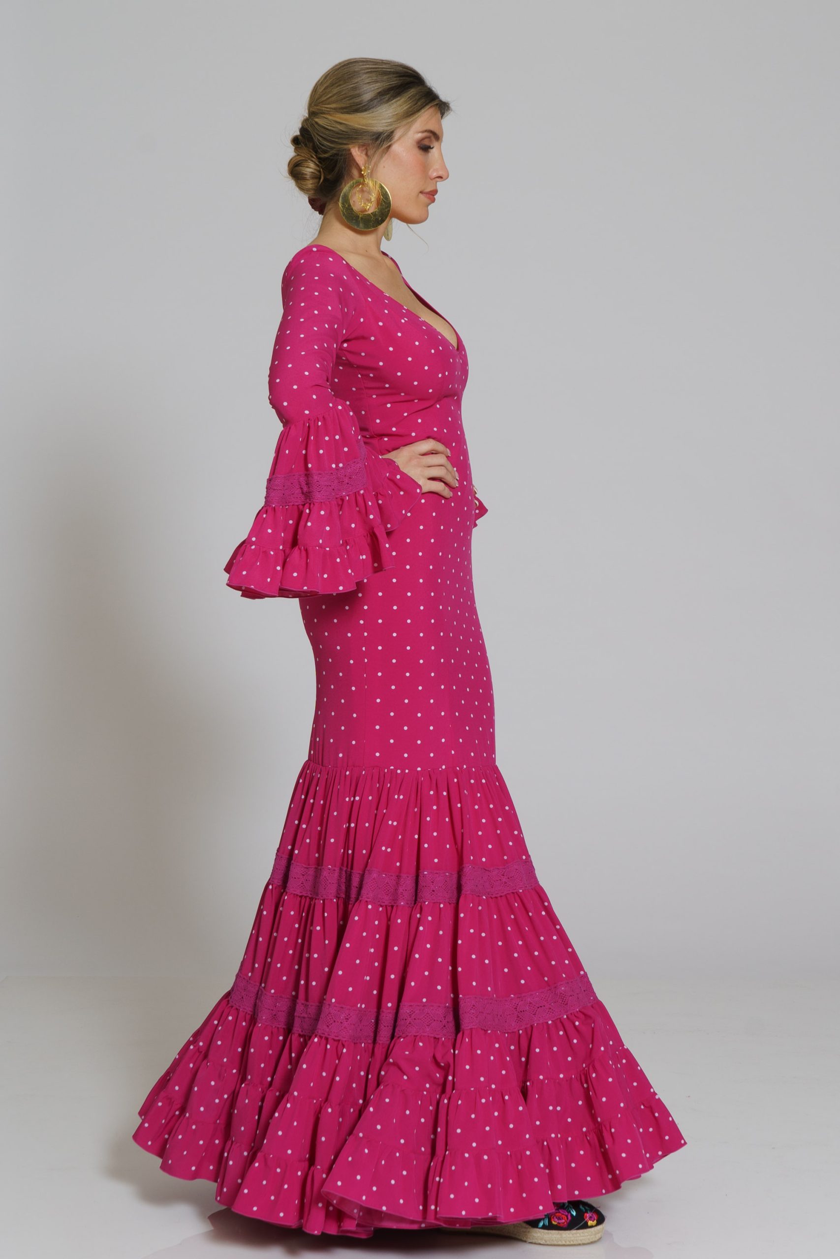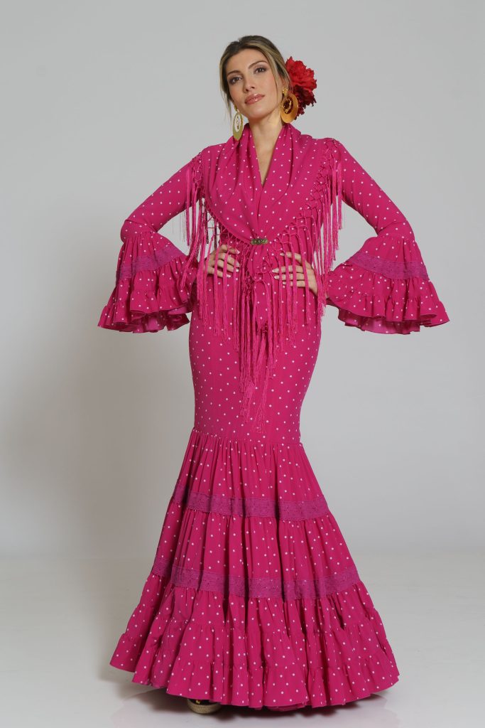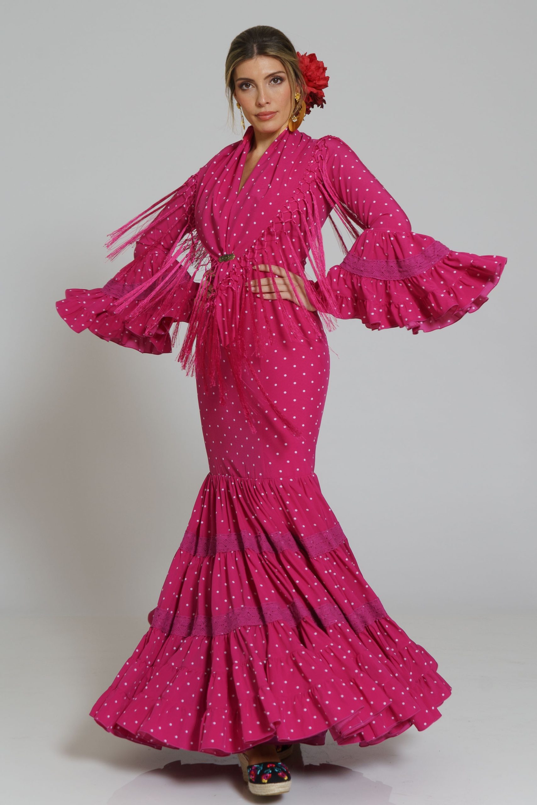 Este diseño tiene su mantoncillo confecionado en el mismo tejido y color con flecos al tono que puedes encontrar en la categoría de MANTONCILLOS con el nombre de Mantoncillo Rumba mujer.