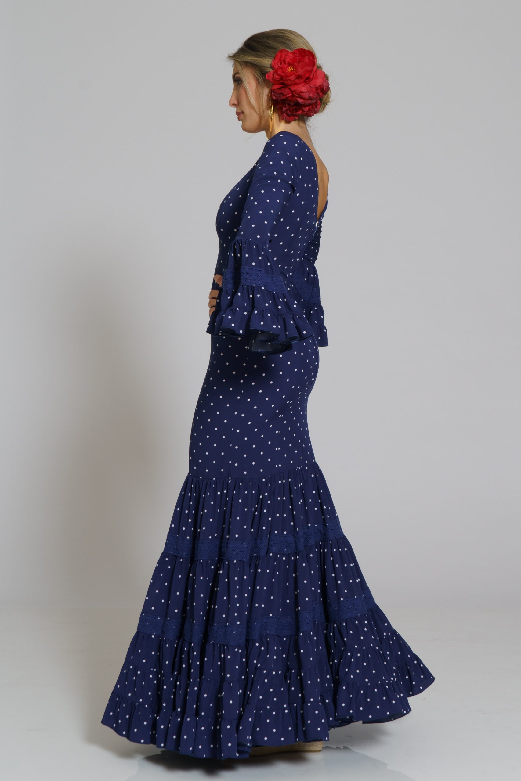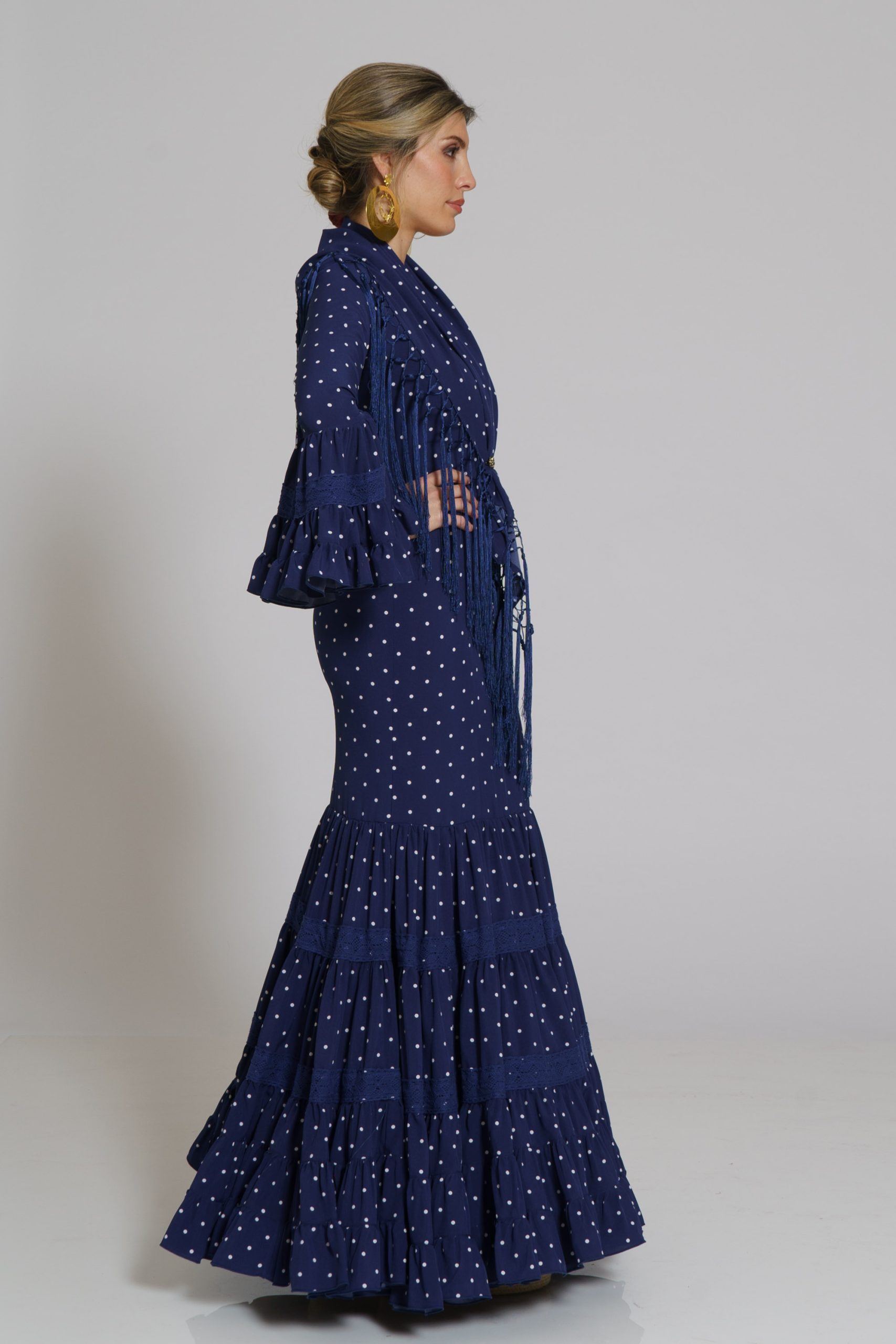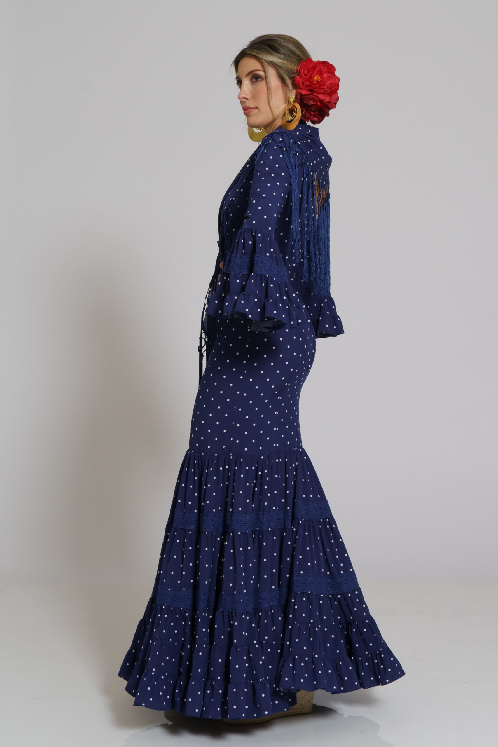 Este diseño tiene su mantoncillo confecionado en el mismo tejido y color con flecos al tono que puedes encontrar en la categoría de MANTONCILLOS con el nombre de Mantoncillo Rumba mujer.
