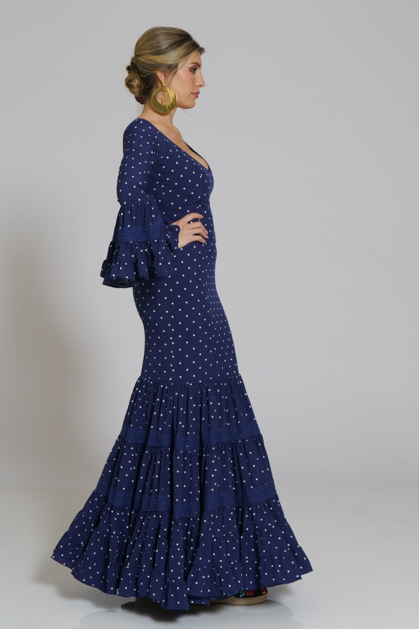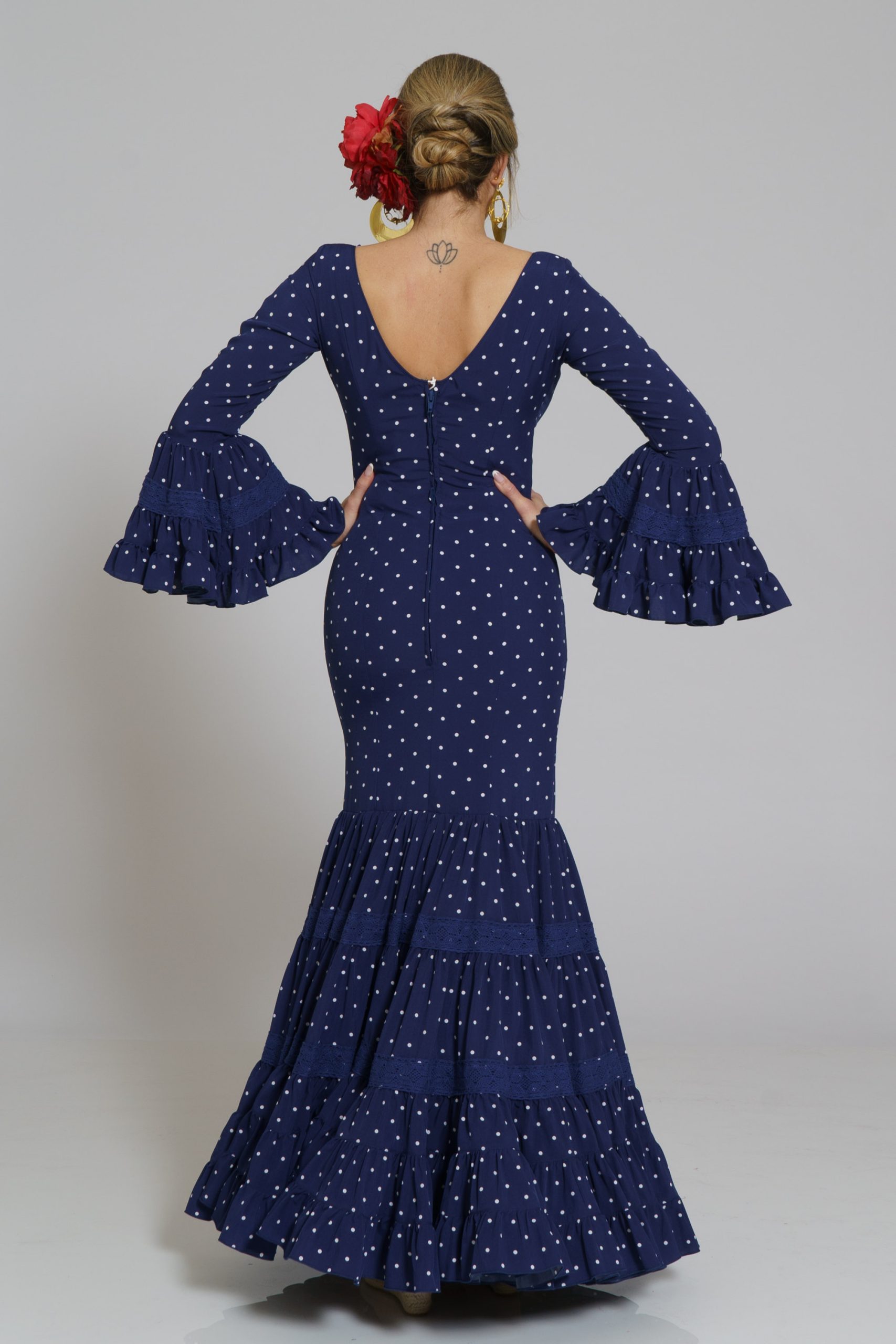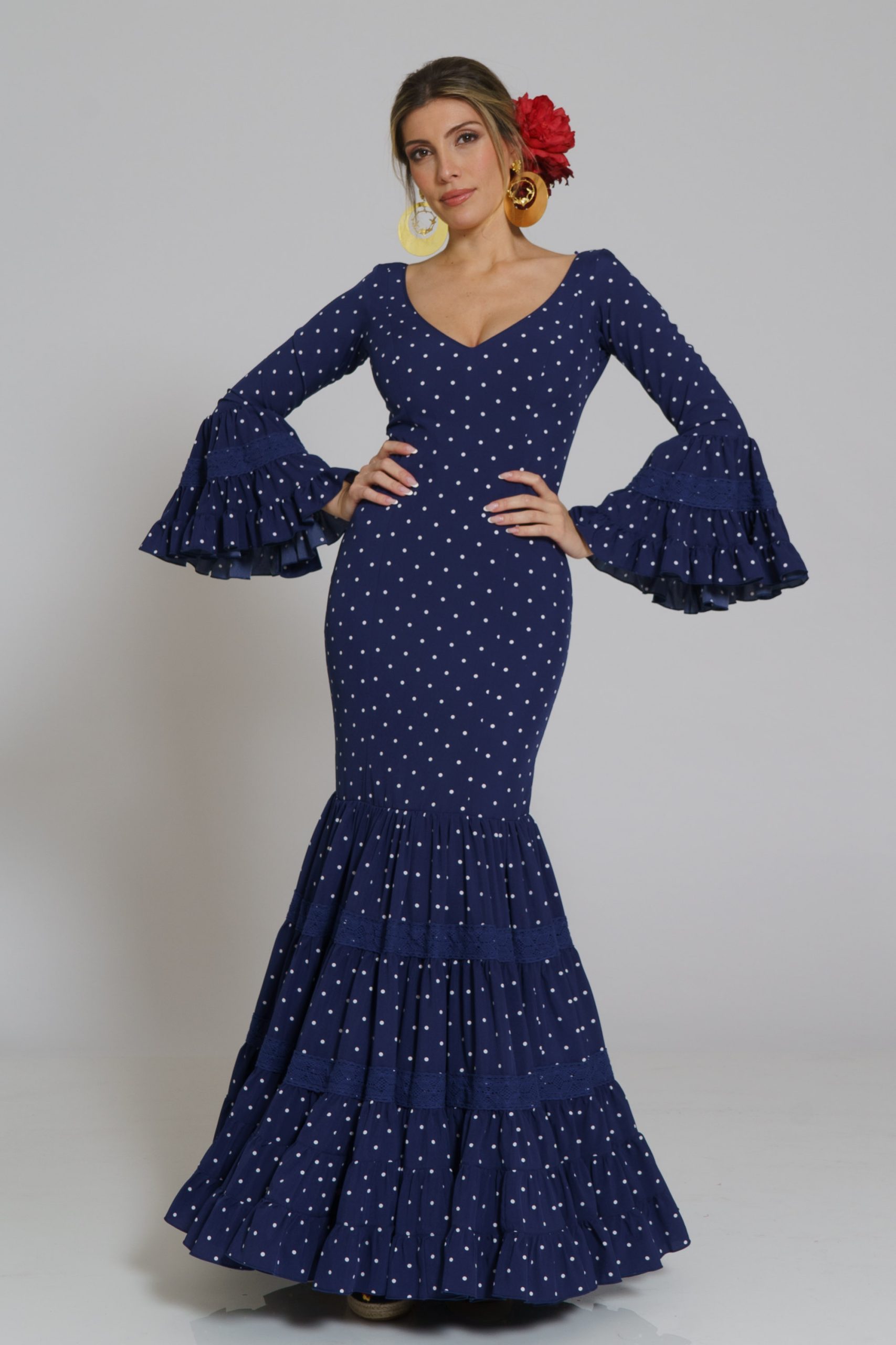 Este diseño tiene su mantoncillo confecionado en el mismo tejido y color con flecos al tono que puedes encontrar en la categoría de MANTONCILLOS con el nombre de Mantoncillo Rumba mujer.