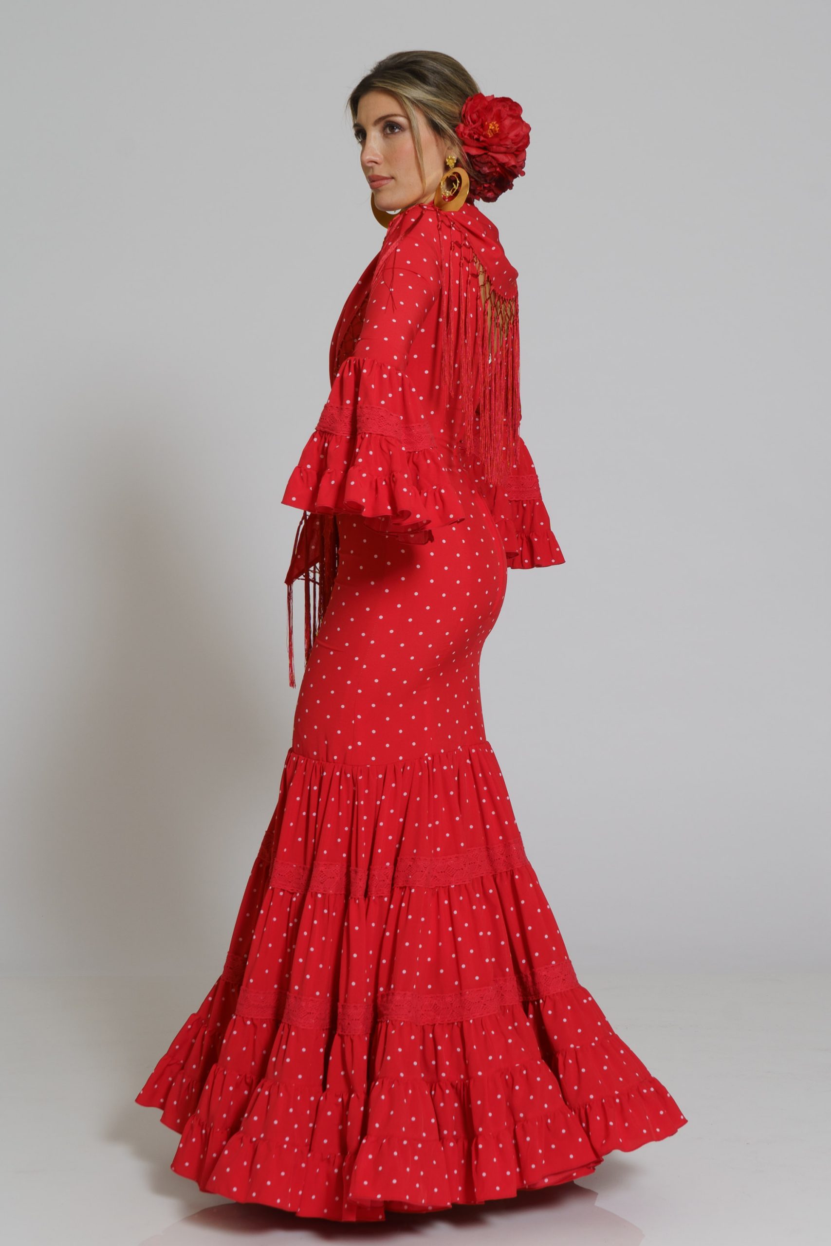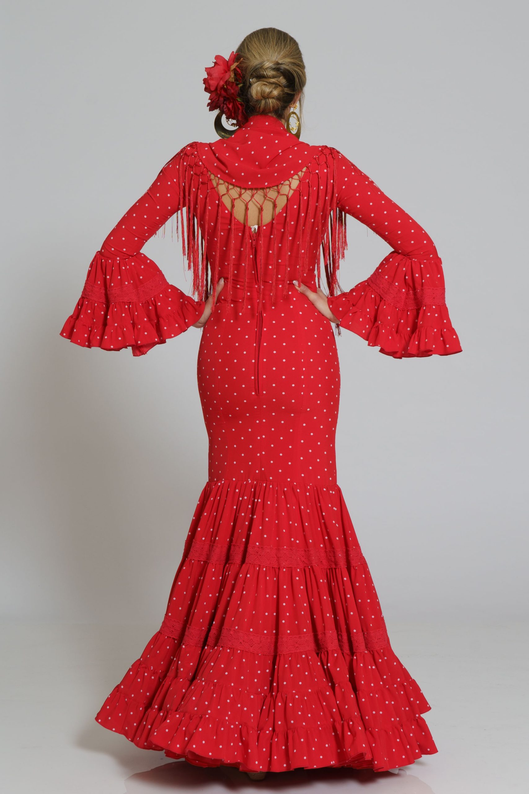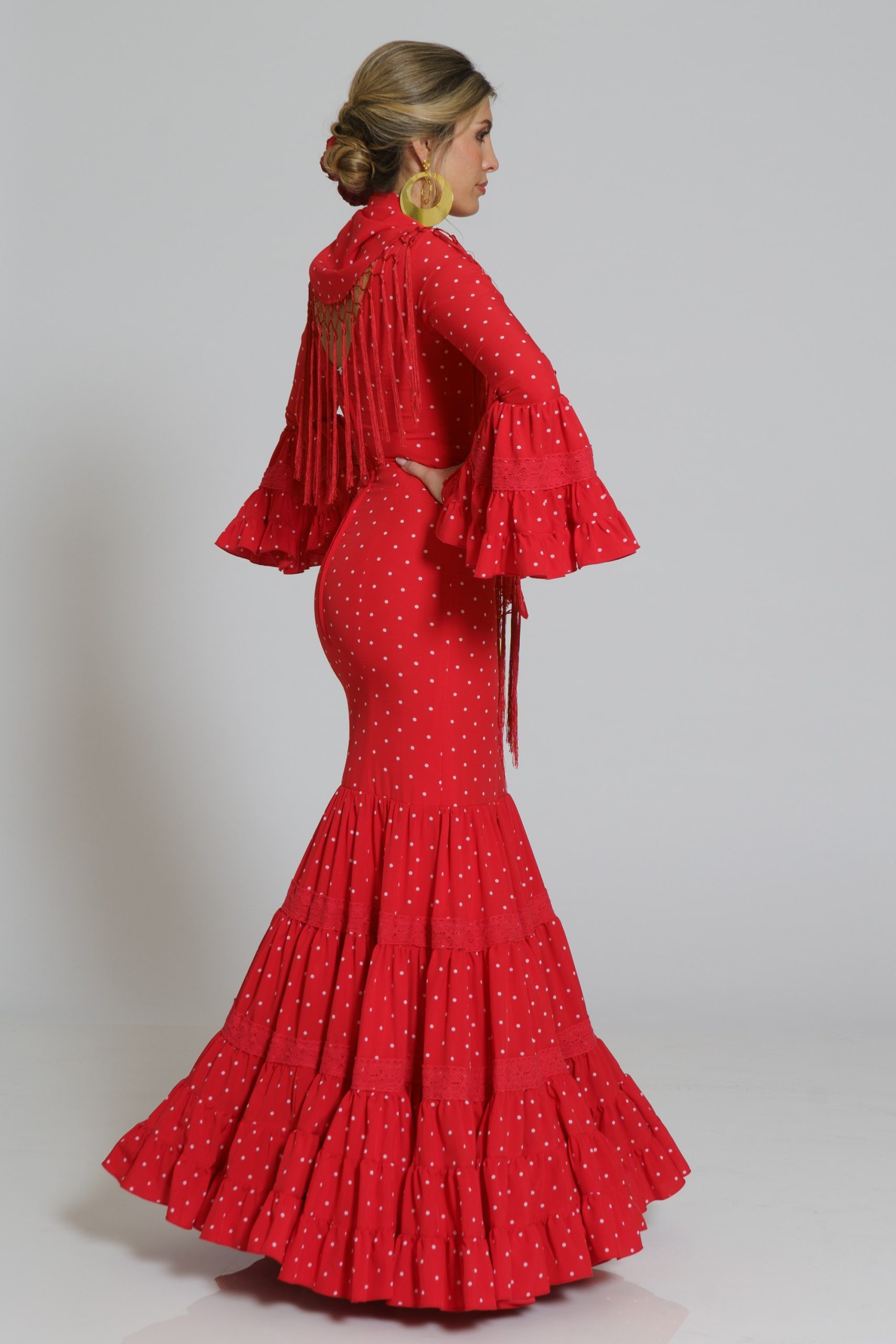Este diseño tiene su mantoncillo confecionado en el mismo tejido y color con flecos al tono que puedes encontrar en la categoría de MANTONCILLOS con el nombre de Mantoncillo Rumba mujer.