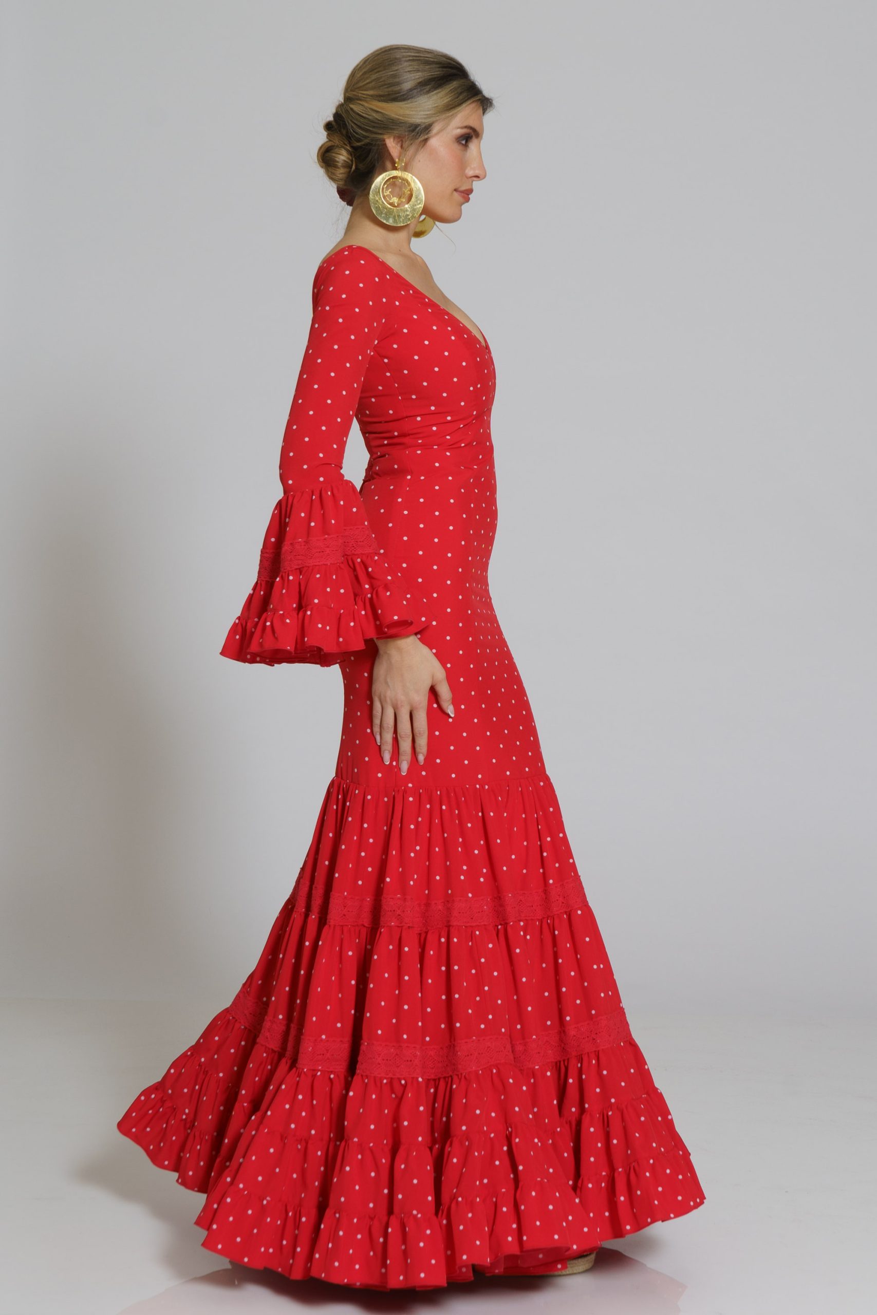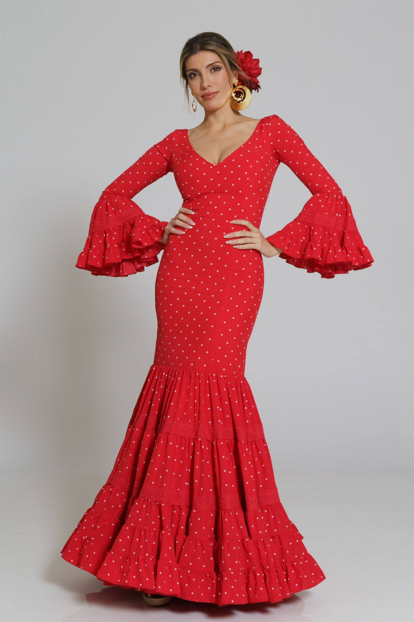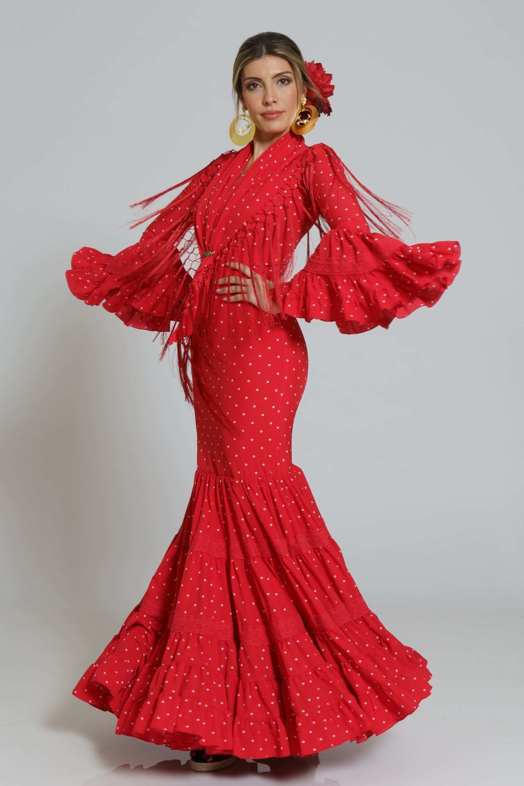 Este diseño tiene su mantoncillo confecionado en el mismo tejido y color con flecos al tono que puedes encontrar en la categoría de MANTONCILLOS con el nombre de Mantoncillo Rumba mujer.